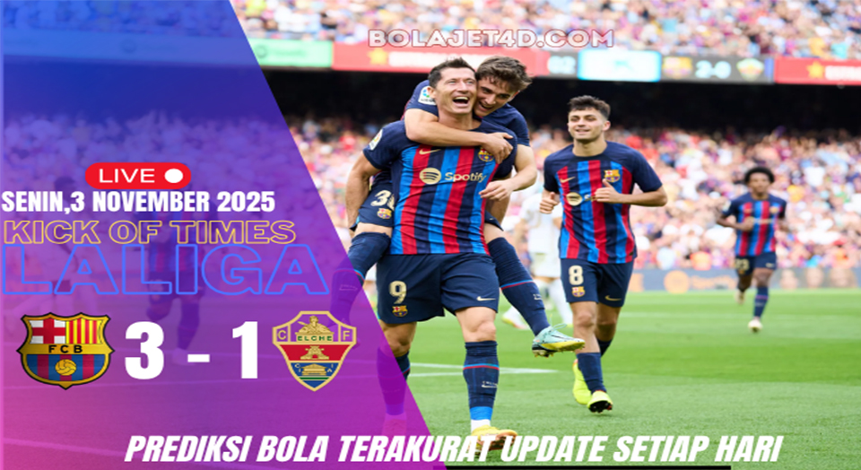 Laga pekan ke-11 La Liga mempertemukan Barcelona, yang tengah berjuang di klasemen, dengan Elche yang berusaha meningkat performanya. Duel ini sangat penting bagi kedua tim: Barcelona ingin kembali ke jalur kemenangan, sementara Elche mencoba mengejutkan tim raksasa di Catalonia. Bagi pemain JET4D, pertandingan ini menghadirkan peluang taruhan menarik โ€” mulai dari prediksi skor, total gol, hingga kedua tim mencetak gol (BTTS). Mari kita kupas secara mendalam kondisi tim, taktik, statistik, dan prediksi pasar taruhan.